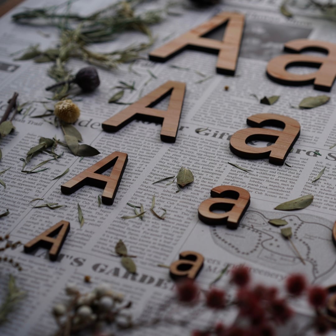 長崎県産の杉を使用したアルファベットの切り文字(高さ約100㎜・厚み約5㎜)です。